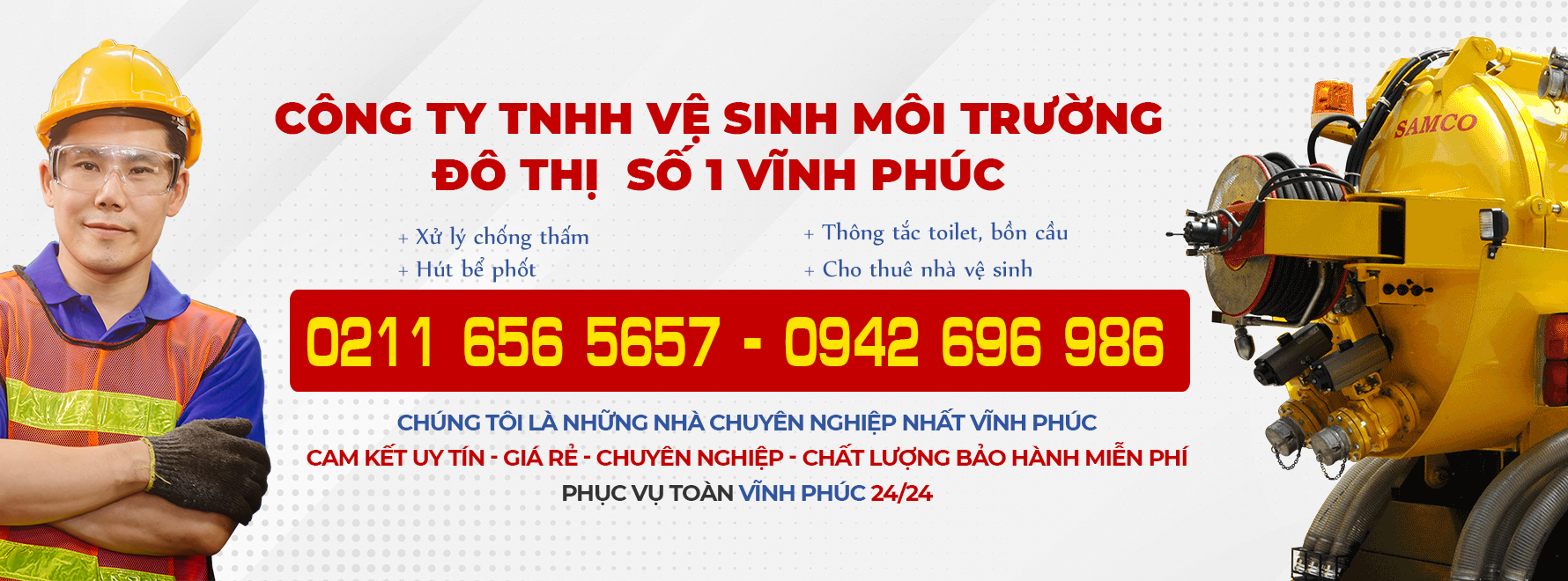 Dịch vụ thông tắc cống, Hút bể phốt tại Vĩnh Phúc luôn phục vụ quý khách 24/24 đảm bảo giá tốt nhất cho quý khách hàng, uy tín sẽ làm hài lòng quý khách khi sử dụng dịch vụ của chúng tôi.